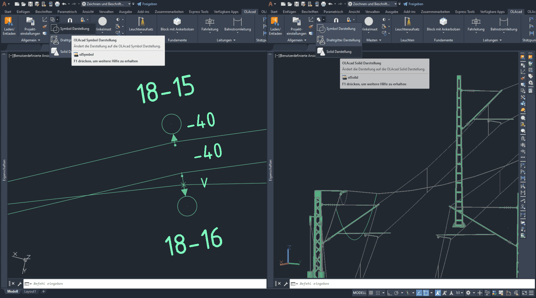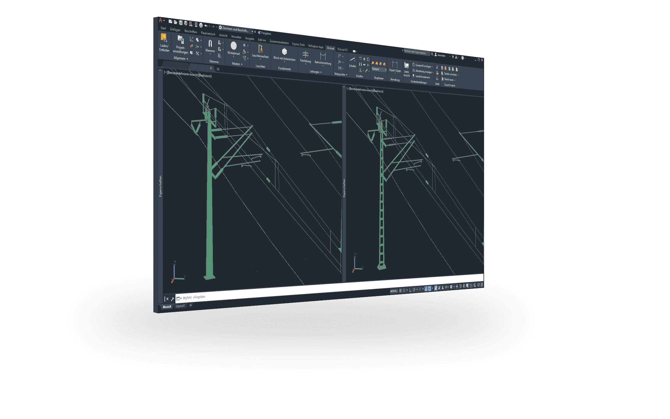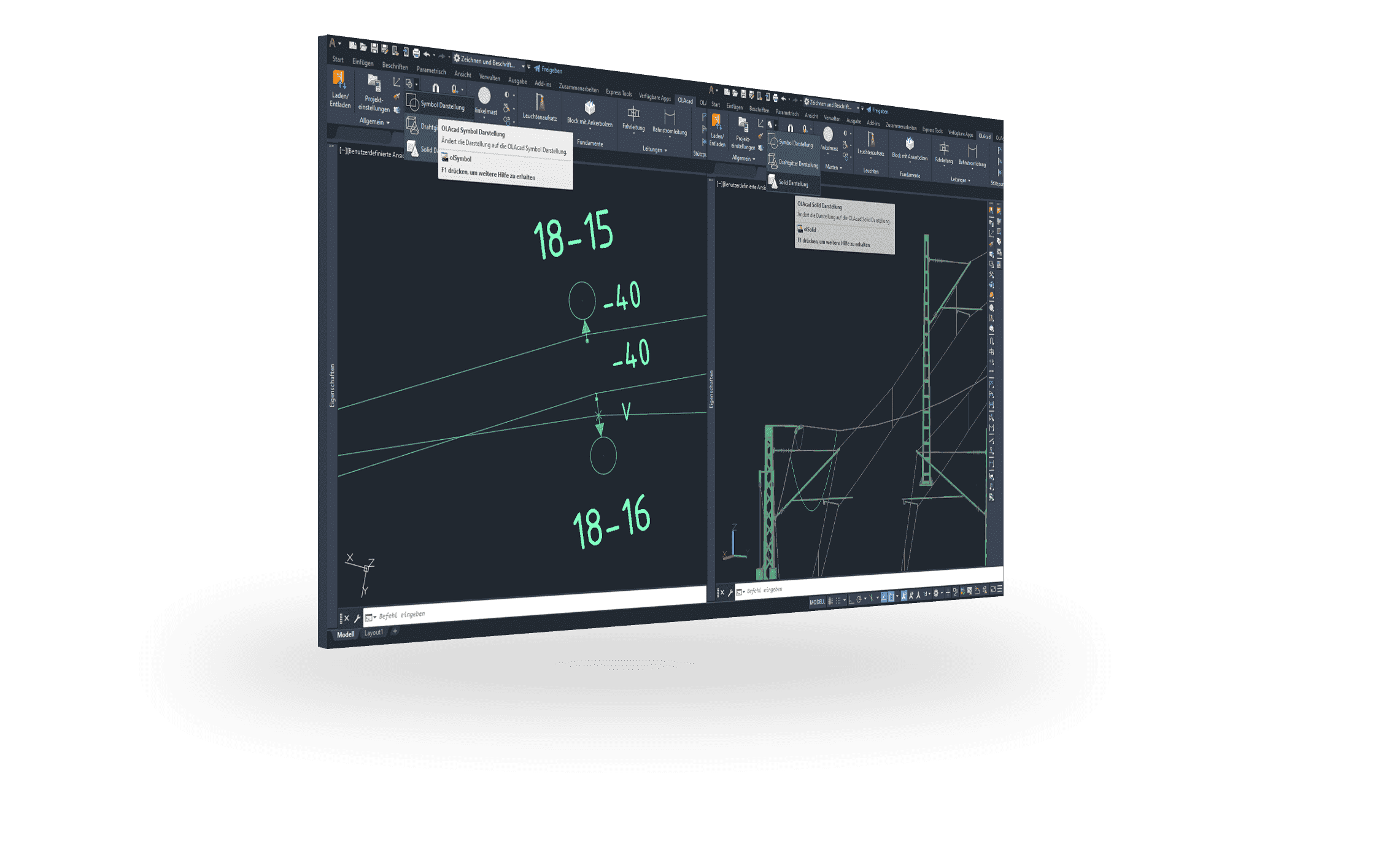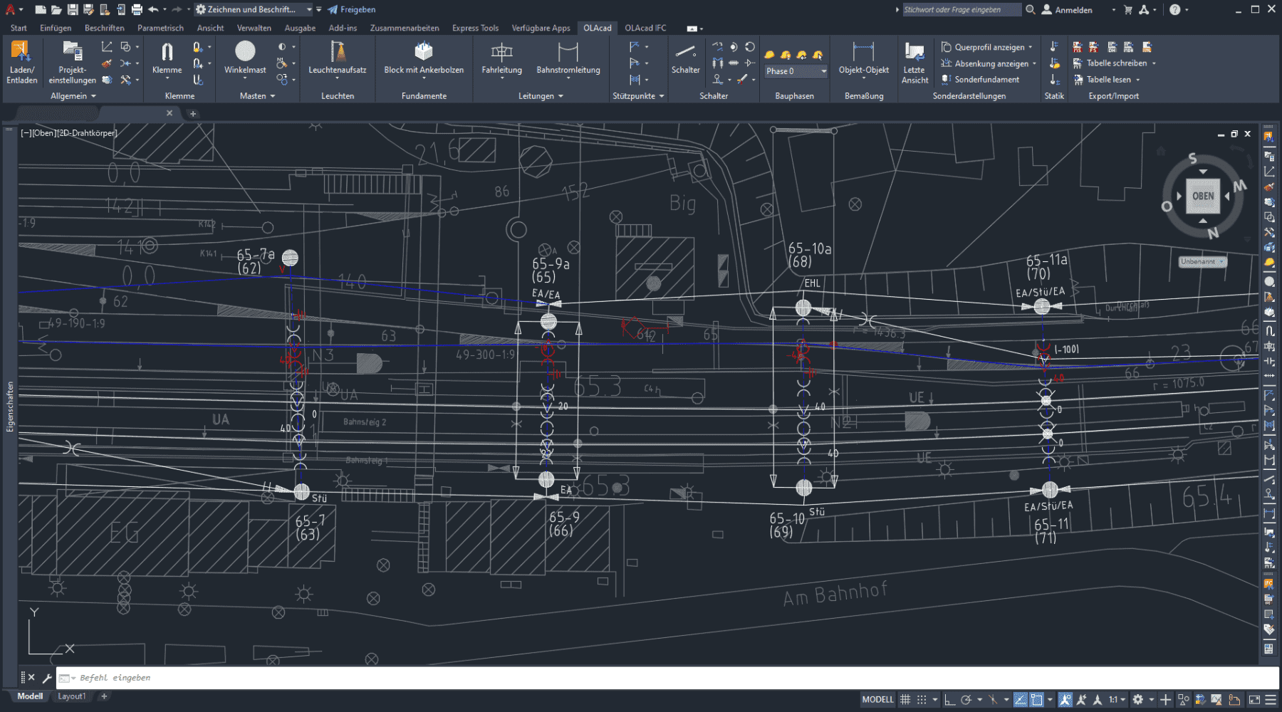 SIGNON OLAcad wurde entwickelt für die Planung von Oberleitungen auf Strecken und in ausgedehnten Bahnhöfen des Nah- und Fernverkehrs, als auch für die Planung komplexer Kreuzungen und Betriebshöfe von Straßenbahnen. Mit langjähriger Erfahrung und dem steten Drang, Innovationen voranzutreiben, ist SIGNON Ihr Partner für bahnspezifische Softwarelösungen. Planen Sie mit den Profis – planen Sie mit SIGNON OLAcad.
