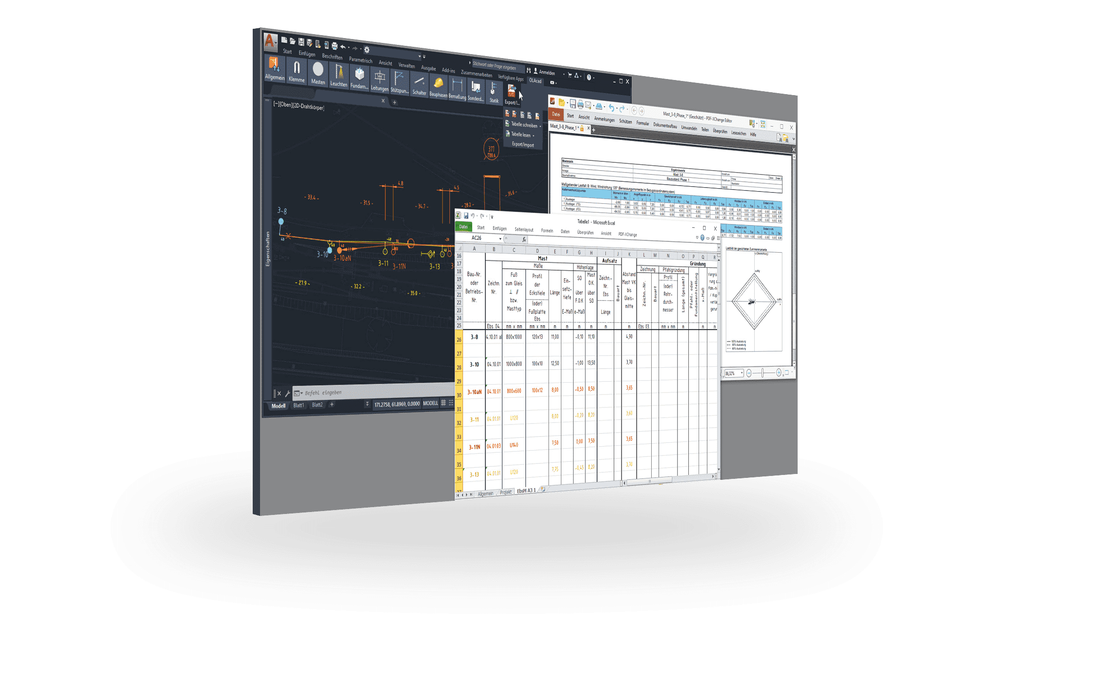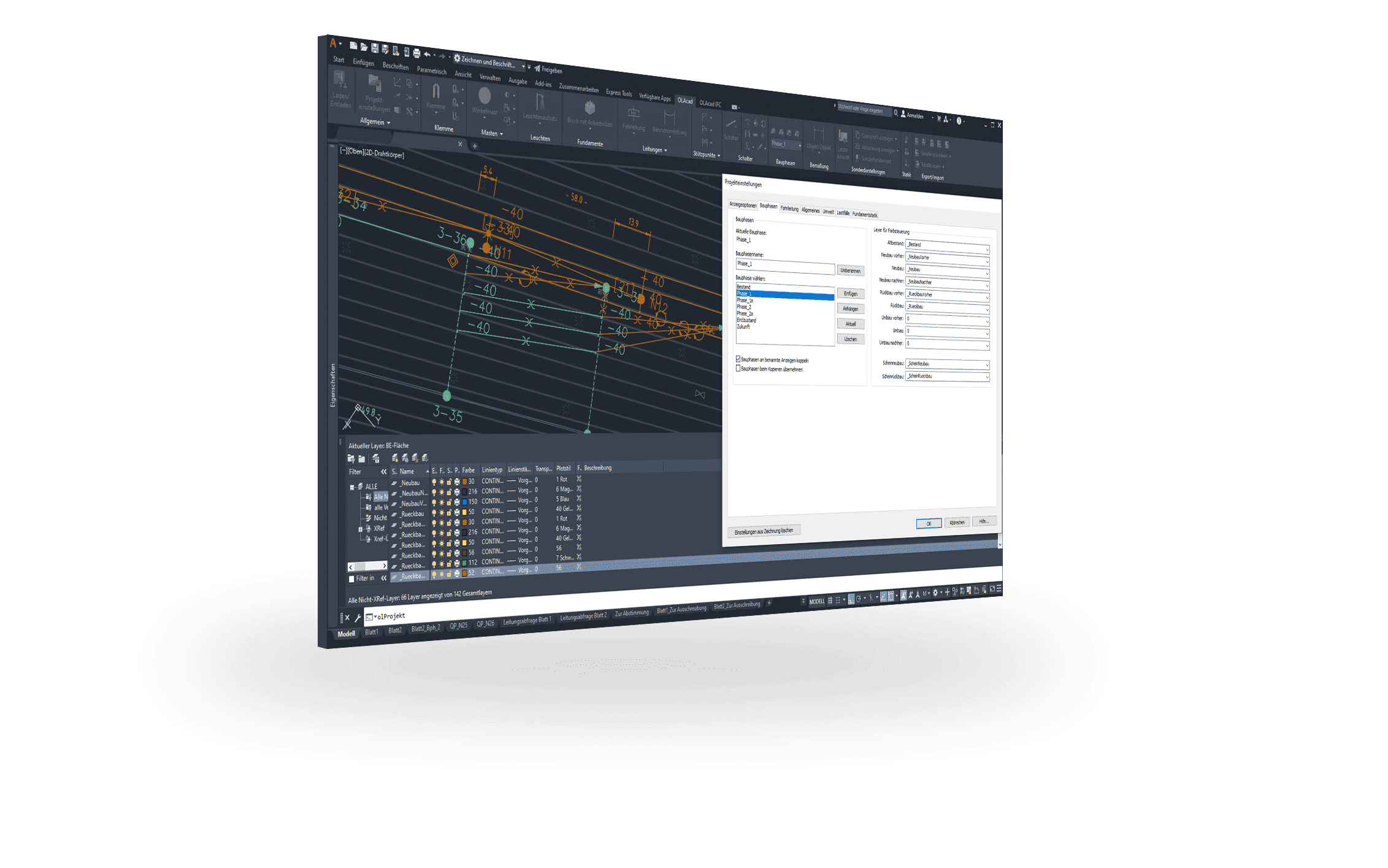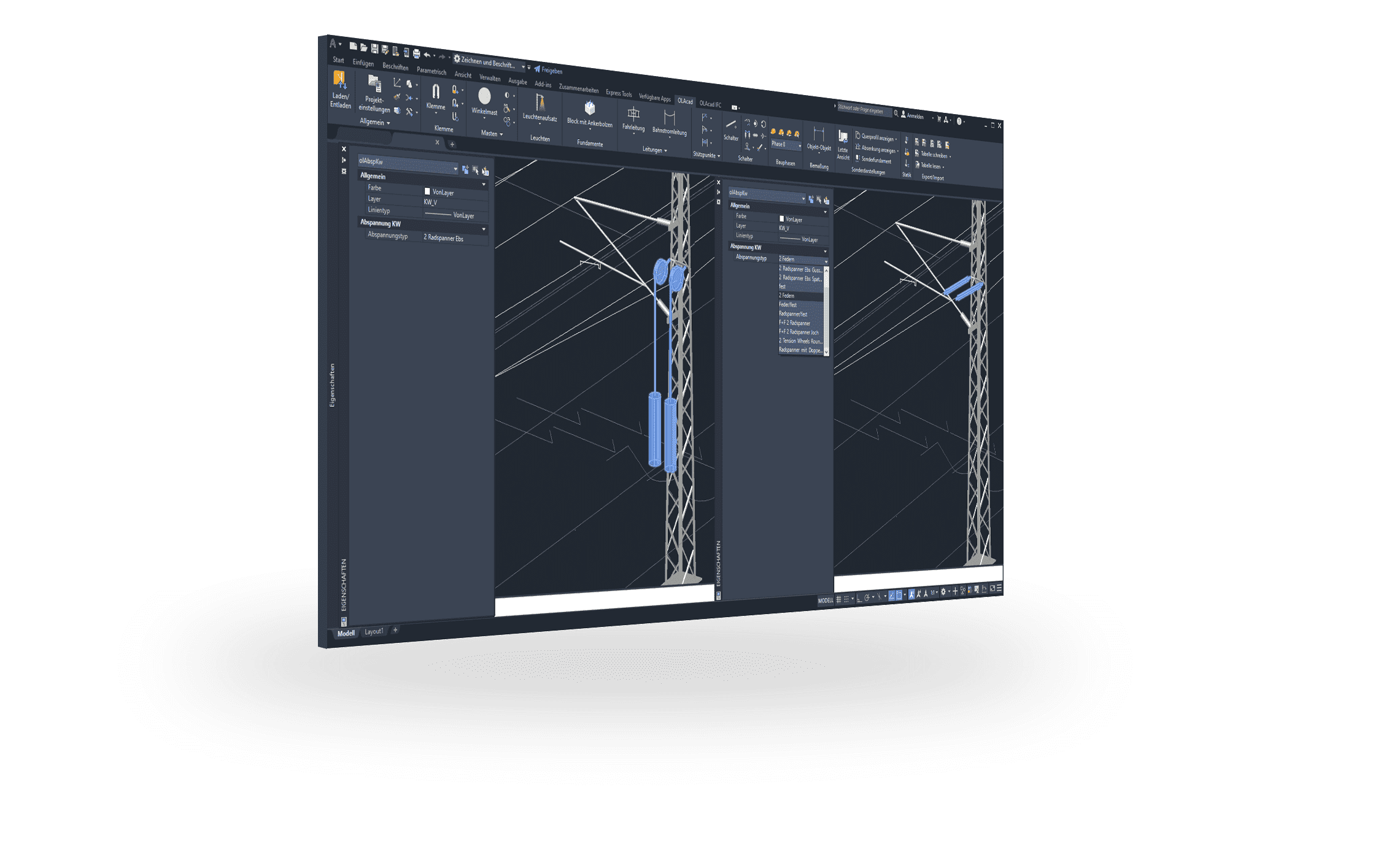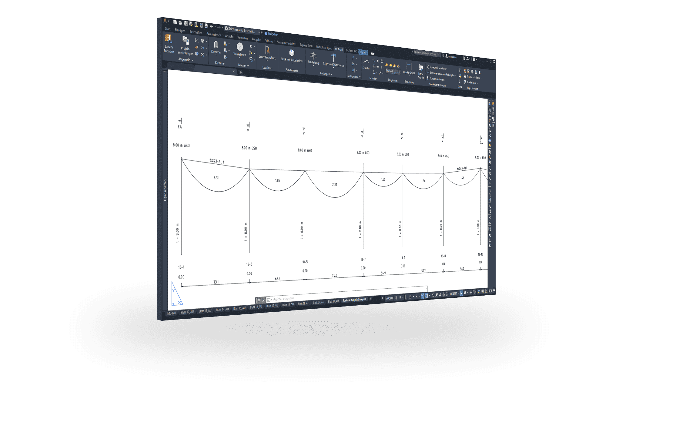SIGNON OLAcad ist eine leistungsfähige Projektierungssoftware zur schnellen und effizienten Planung von Oberleitungsanlagen im Fern- und Nahverkehr.